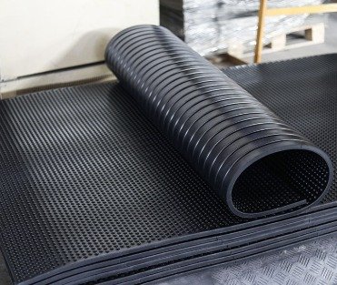 The underneath of the rubber mats has grooves which allows water to drain away, and these rubber mats can easily be cut to any sizes required.